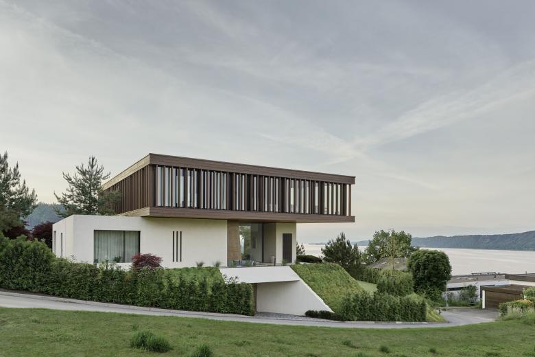 Die skulpturale Bauform, spektakuläre Auskragungen und großflächigen Fensterwände eröffnen atemberaubende Ausblicke auf den Bodensee und die umliegende Landschaft. Die abwechslungsreiche und dynamische Komposition der Baukörper erzeugt faszinierende Zwischenräume – und damit unerwartete, neuartige Orte zum Leben.