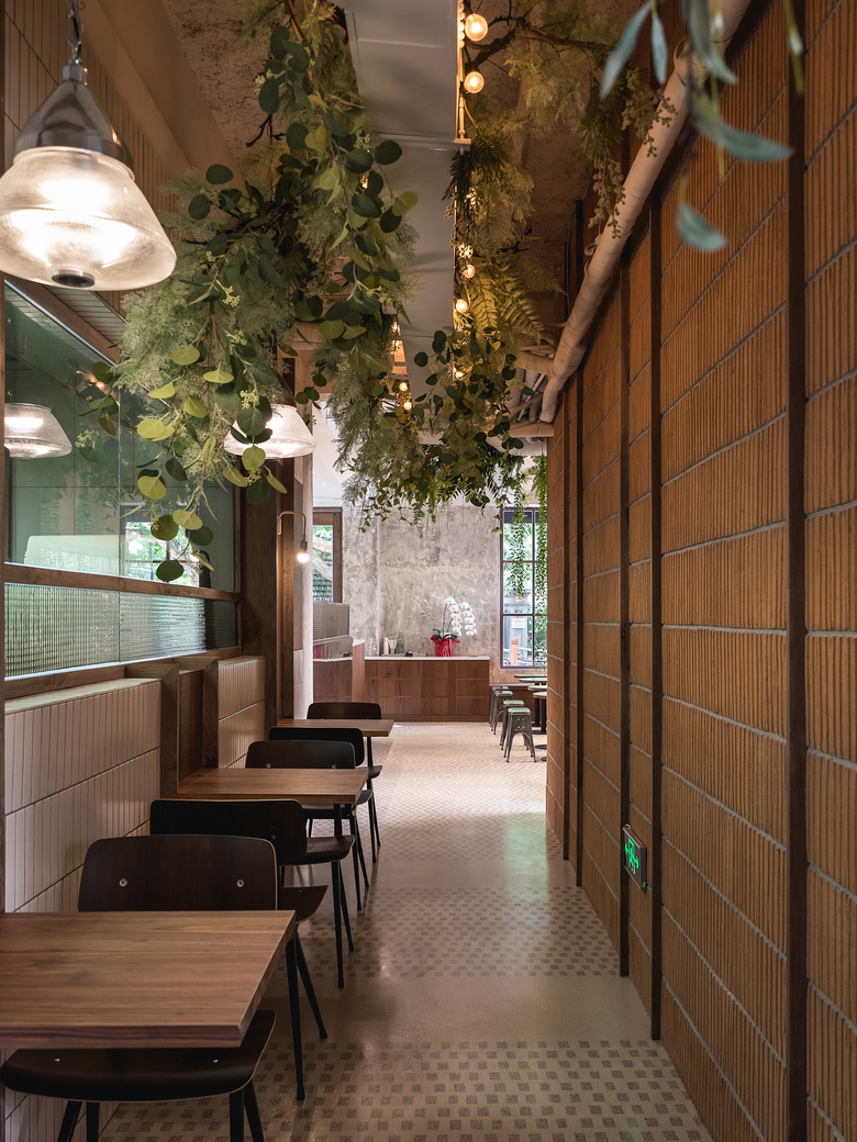 Our latest project for one of Shanghai's best bakeries, Luneurs. This tree-lined spot in the former French Concession was destined for a lively community hangout. The brushed stainless steel and white marble countertops highlight the production focus of this bakery. Balancing this are softer natural finishes and textures of wood and brick providing a link to the artisanal history of the bakery. Walnut window frames and a large product window to the exterior invite in the passerby. Raw concrete walls, vertical white tiles, and their signature concave mirror and hand-laid terrazzo floor, reference the first shop.