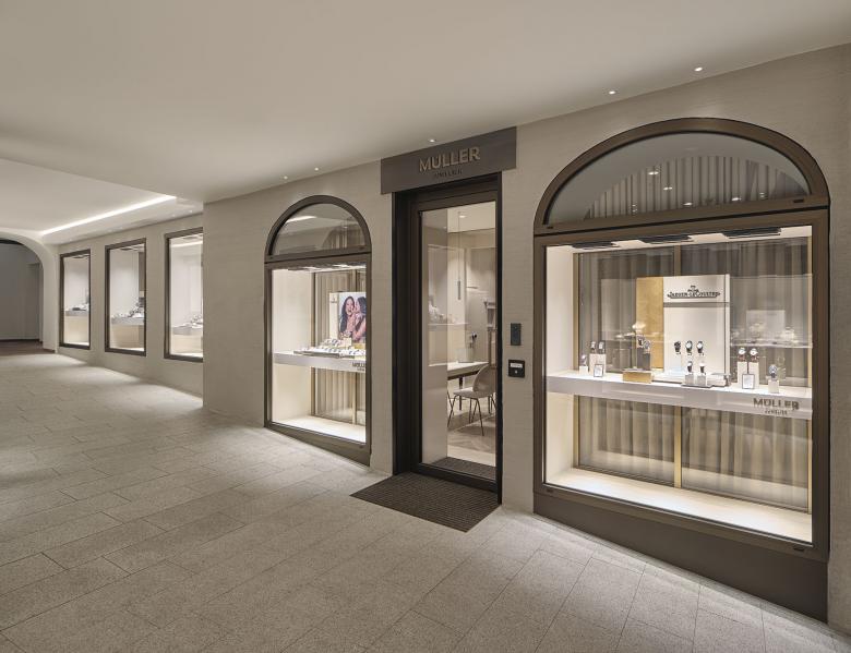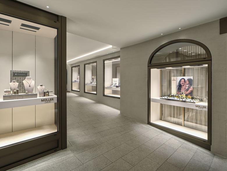 Seit mehr als 90 Jahren befindet sich der exklusive Damen- und Herren-Juwelier für hochwertigen Schmuck sowie exklusive Uhren Am Schlößle 1 im schönen Kempten. Die beiden traditionellen, direkt gegenüberliegenden Ladenlokale sollten in zwei aufwändigen Umbauphasen jeweils einen eindrucksvollen Relaunch erfahren. Sowohl die Tradition des Hauses Müller als auch die Geschichte der denkmalgeschützten Gebäude mussten dabei in das neue Ladendesign durch die HEIKAUS Design Studio einfließen. Die Hochwertigkeit der Produkte sollte auch künftig in den Verkaufsräumen der Gebäude repräsentiert werden. Kundinnen und Kunden sollen eine Inszenierung aller Raumbereiche erleben, die geschmackvoll und exklusiv jede Produktgruppe in Szene setzt und die Räumlichkeiten dabei harmonisch verbindet. Die neue Material- und Farbwelt muss die Kundinnen und Kunden in einer exklusiven „Wohnzimmer-/Bar-Gemütlichkeit“ empfangen, welche durch die Hochwertigkeit des Design-Stils zugleich beeindruckt.