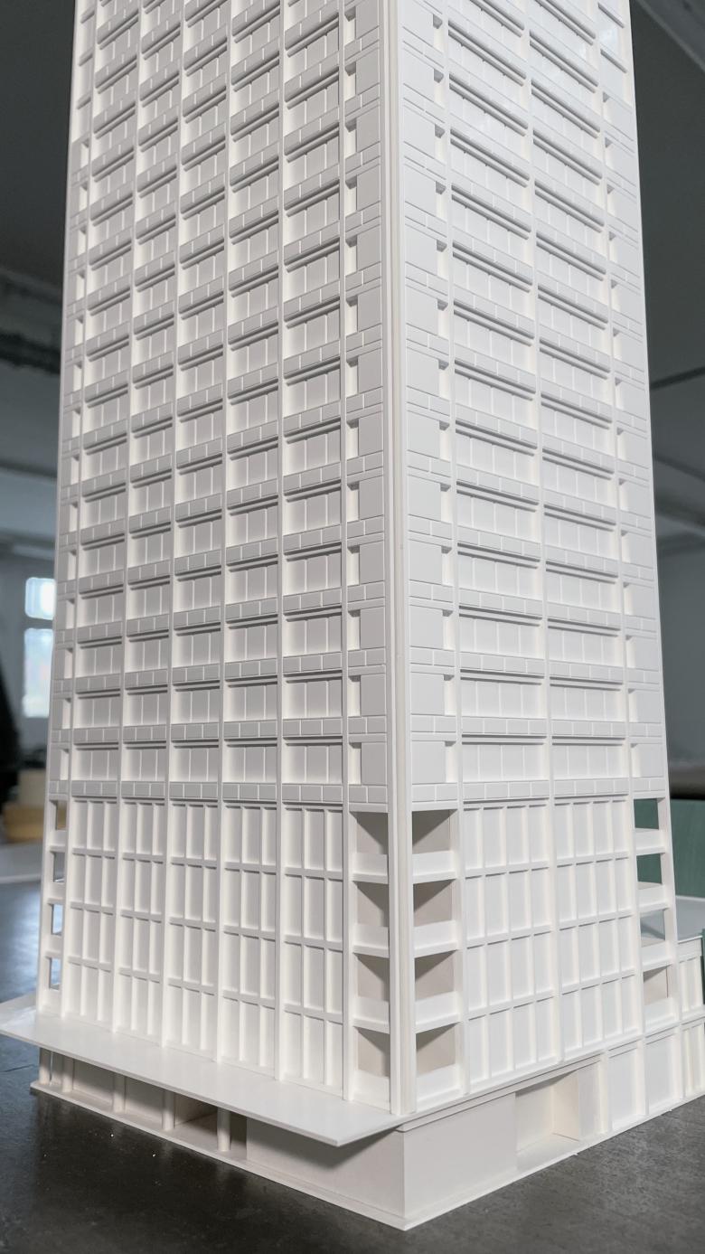 Die grösste Herausforderung lag in der komplexen Gebäudeform und der vielschichtigen Fassadenstruktur – beides erforderte höchste Präzision im Modellbau.