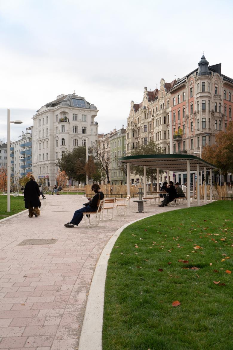 Der Marktraum ist das gebaute Zentrum eines mehrstufigen Transformationsprozesses, der den Naschmarkt von einer Asphaltfläche zu einer klimaaktiven, gemeinschaftlichen Stadtlandschaft wandelt.