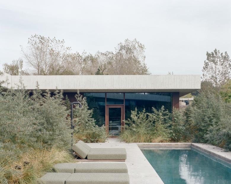 Private residence with views on the dunes. In order to embrace the naturally inconsistent relief, the different living areas have been implanted at different levels. Also the green roof adds to a complete integration in nature.