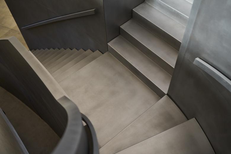 The complexity of the original space had its unexpected benefits. Thanks to multiple entry points, including access from different levels, the journey can vary depending on the user. Visiting dignitaries may arrive directly from the main building entrance to the exhibition area via the lift and descend to the boardroom. Alternatively, they may be welcomed with refreshments in the workshop area, all without disturbing the employees in the open office.