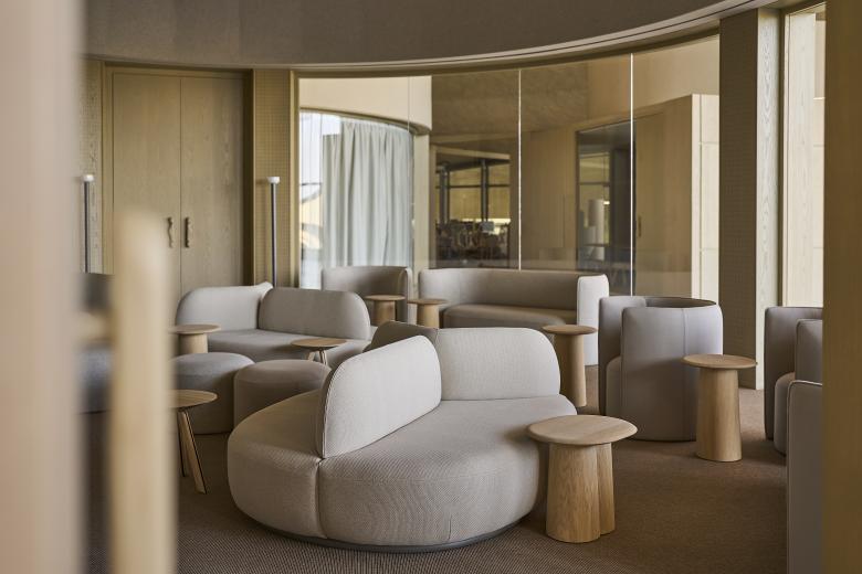 Acoustics were thoroughly considered – from absorptive walls and ceilings, tailored to each space’s aesthetics, to free-standing acoustic panels. We produced locally when possible to support local businesses. Furniture by local designers was used in the executive areas and cushions were woven by Emirati artisans, part of a collective that focuses on preservation of traditional skills, using a technique called sadu.