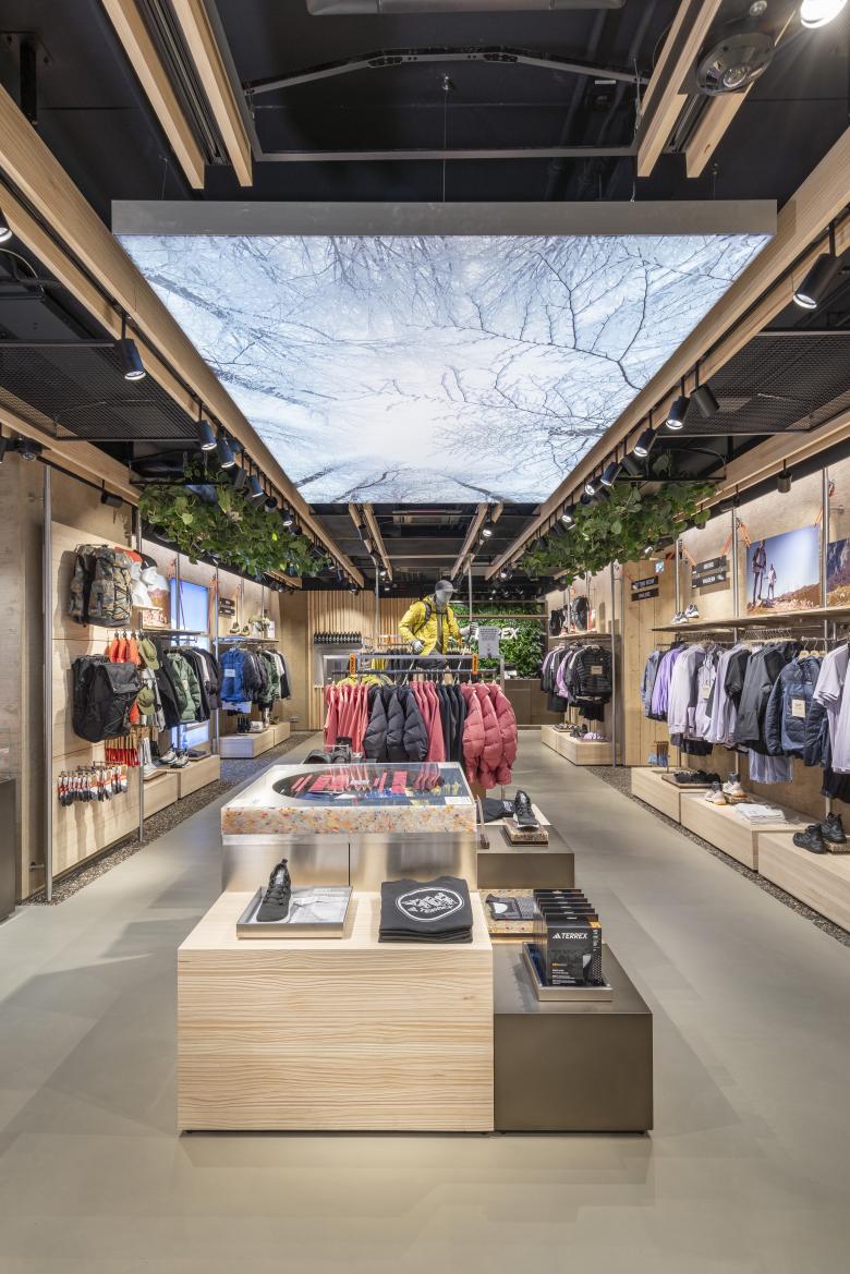 Das nachhaltige Store-Designkonzept spiegelt die Werte der Marke wider: In Kombination mit der Terrex-Produktpalette und digitalen In-Store-Elementen entsteht ein besonderes Einkaufserlebnis. Die immersive Gestaltung lädt dazu ein, die Vielseitigkeit der Outdoorszene zu entdecken – von technischen Bekleidungslösungen bis hin zu innovativem Equipment für unterschiedliche Terrain- und Jahreszeiten.