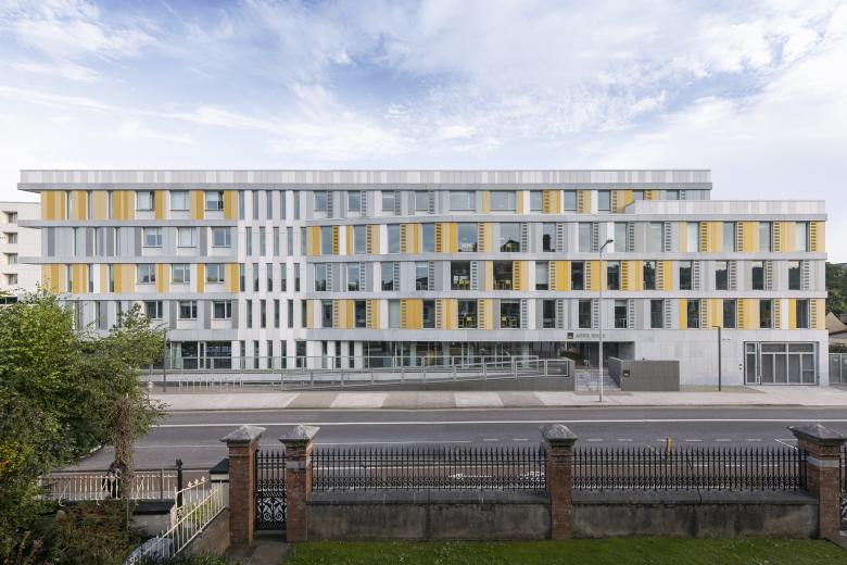 Das „Amnis House“, ein Studentenwohnheim nach dem Entwurf von DTA Architects (Dublin) im irischen Cork, bietet 190 Studentenzimmer mit eigenem Bad in 28 Cluster-Apartments sowie eine Rezeption und Gemeinschaftsräume im Erdgeschoss. Durch seine hellen Fassaden aus Granit und Faserzement erhielt das „Amnis House“ eine unverwechselbare Identität, die seiner prominenten städtischen Lage ebenso wie seinen jungen Bewohnern gerecht wird.