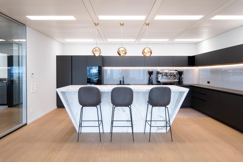 Der konzeptionelle Gedanke basierte auf dem Spannungsfeld zwischen Transparenz und Vertraulichkeit. Während offene Kommunikationszonen den Austausch und die Zusammenarbeit fördern, sorgen abgeschirmte Arbeitsbereiche und gezielte Raumakustikmaßnahmen für die notwendige Ruhe und Konzentration im Arbeitsalltag. Der Entwurf vereint eine klare, strukturierte Raumorganisation mit einer zurückhaltend-eleganten Innenarchitektur, die Kompetenz und Vertrauen ausstrahlt.