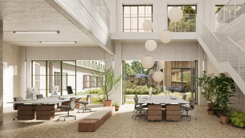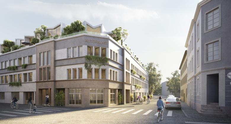 For the Autopalast, the building’s generous floor heights—originally designed for cars—become a major advantage. These spacious interiors make conversion easier and more flexible. This principle is also carried into the new buildings, which are designed with higher-than-usual ceilings to ensure adaptability for future generations.