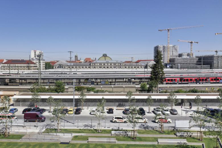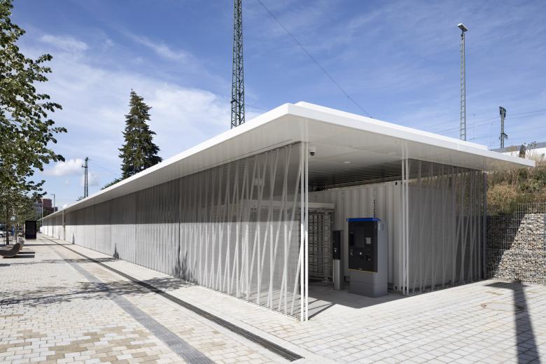 Am Südausgang des Nürnberger Hauptbahnhofes, am neu gestalteten Nelson-Mandela-Platz, ist in Zusammenarbeit mit den städtischen Ämtern ein gesichertes Fahrradparkhaus entstanden.