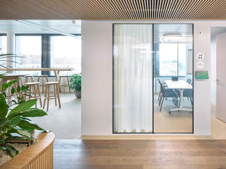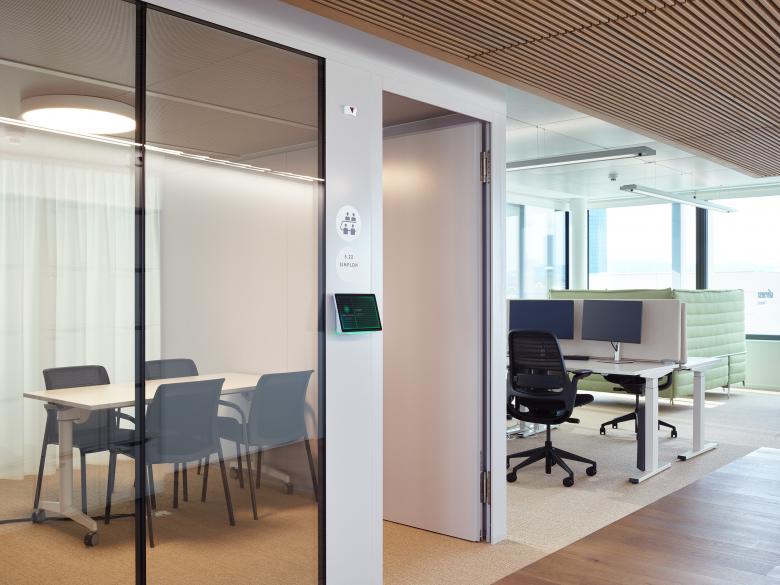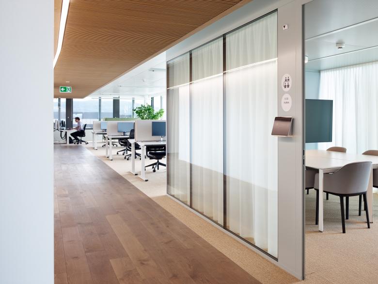 Das neue Bürokonzept umfasst rund 100 flexible Arbeitsplätze, 50 Touchdown Stationen, 10 Focusräume, 9 Sitzungszimmer und 5 Single Offices. Die Raumstruktur ist offen, bietet aber ausreichend Rückzugsmöglichkeiten. Sie ermöglicht konzentriertes Arbeiten ebenso wie spontane Zusammenarbeit und passt sich so den unterschiedlichen Anforderungen im Arbeitsalltag an.