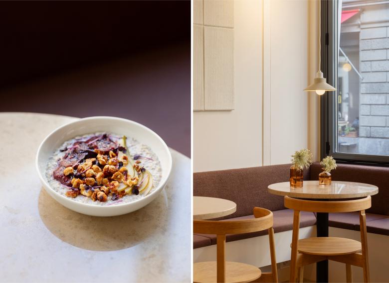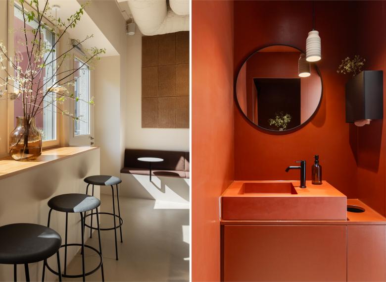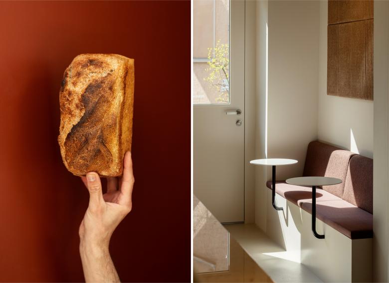 Mit viel Liebe zum Detail hat pfeffermint AG das neue Interior des Café Irma gestaltet – ein Ort, an dem echtes Handwerk im Mittelpunkt steht. Natürliche Materialien und ruhige Naturfarben prägen den Raum und lassen Brot und Produkte in den Vordergrund treten. Handgefertigte Keramikleuchten, Akustikelemente aus gepresster Baumwolle und warmes Kirschholz, das die Farbigkeit einer knusprigen Brotkruste aufnimmt, schaffen eine ruhige und authentische Atmosphäre.