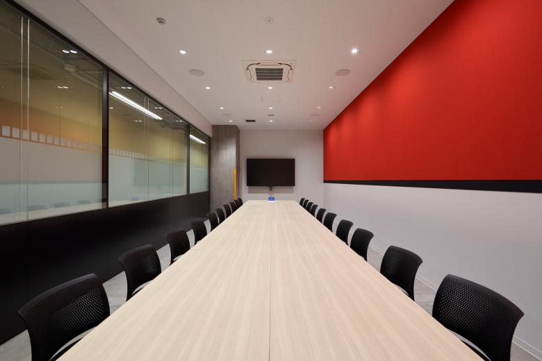 また、この空間を印象づける要素の一つである色については、ブランドカラーの赤を来客エリアなどの要所に用いるとともに、社員用のスペースには赤以外のブランドカラーを用いることで視覚的な楽しさを散りばめています。