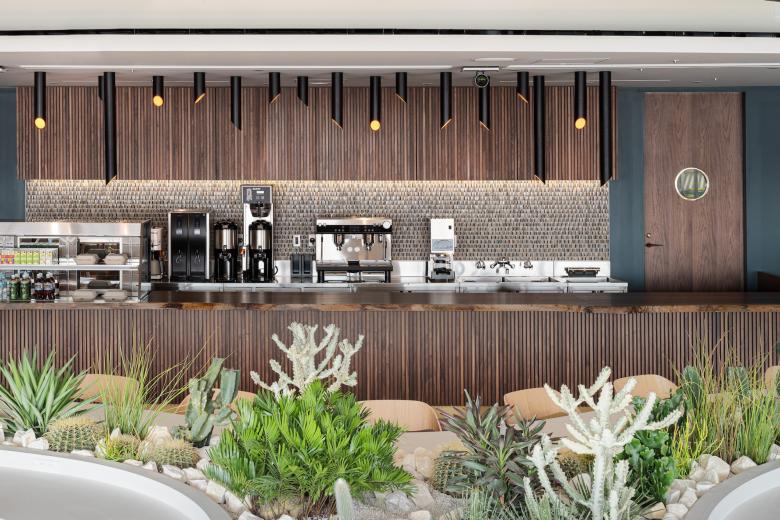 来客エリアやワークカフェには、個性豊かな植物を数多く取り入れることで、自然とのつながりをより強く感じられる空間を創出。働く人々の感性と創造性を刺激する、これからのワークスペースのあり方を体現したオフィスが実現しました。