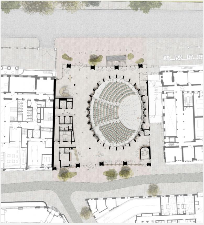 Our proposal aims to subtly express the cultural, economic and environmental significance of Africa in one of London's most prominent civic spaces, Lincoln's Inn Fields in synthesis with the immediate context. Drawing from architectural traditions of Africa and the global South the building aspires to the highest standards of environmental sustainability through its material palette, embedded technologies and formal composition. The open C-shaped massing faces east around a central courtyard, allowing natural light and air to reach each office, meeting room and teaching space, thereby eliminating the need for mechanical ventilation in the majority of the building and dramatically reducing operational loads. On the façade, fluted terra cotta cladding elements signal the clay-based architectural traditions of Africa while operating as 'solar chimneys': a technological innovation which will passively ventilate the perimeter rooms through these hollow flutes in both winter and summer months. The environmental design of the building promotes high standards of wellbeing and an equitable experience for all users.