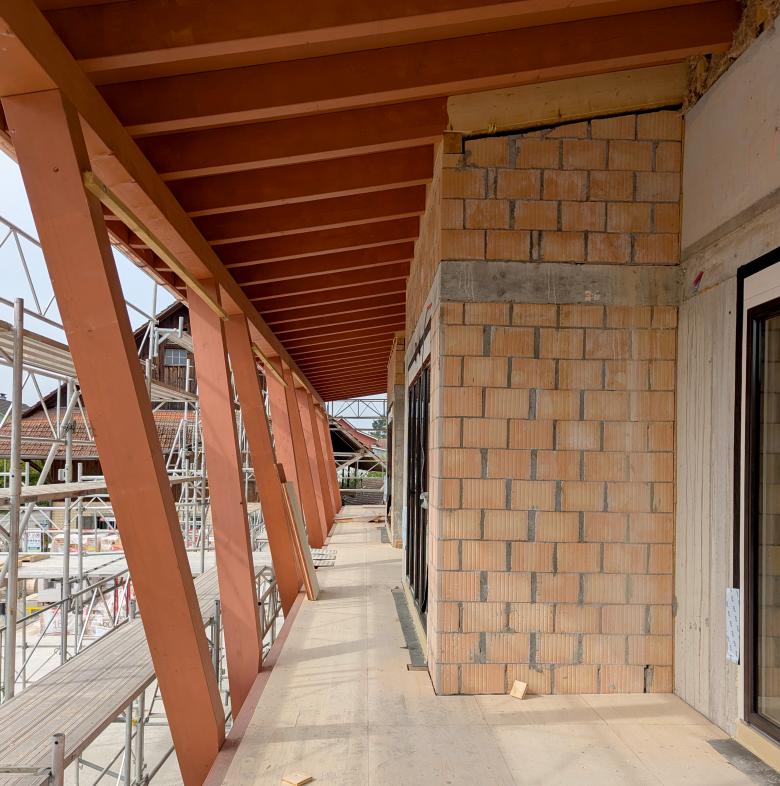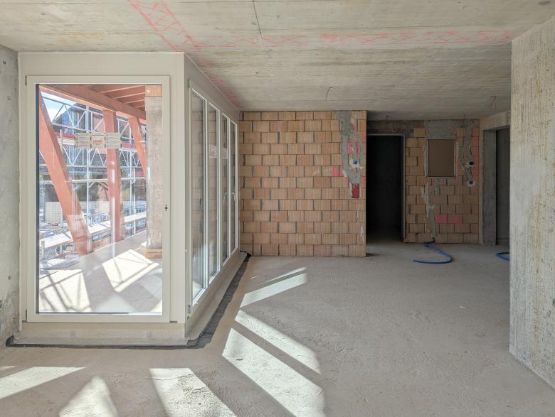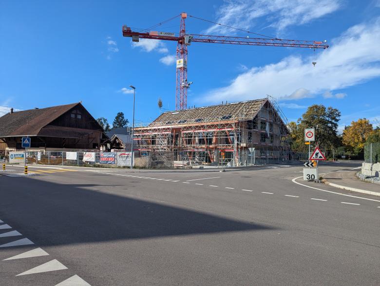 Die ehemaligen Obstwiese eines denkmalgeschützten Bauernhauses im historisch gewachsenen Dorfkern Wiesendangens wird im Sinne der Verdichtung mit einem Mehrfamilienhaus bebaut. Der Bauernhof selbst erfuhr bis zur Auflösung in der 1980er Jahren mehrere Um- und Anbauten und eine Erweiterung durch eine freistehende Scheune. Der Neubau kommt von der Dorfstrasse zurückversetzt zu liegen, um den Anforderungen vom Ortsbildschutz gerecht zu werden, die Sicht auf die bestehende Scheune und die Obstwiese als Freifläche im Zentrum zu erhalten. Das MFH mit ortüblichem Giebeldach und einer hinterlüfteten Holzfassade beherbergt acht 2.5 - 4.5 Zimmerwohnungen mit attraktiven Aussensitzplätzen, Balkonen und Loggien zur Obstwiese hin. Zufahrt zur Tiefgarage und Zugang erfolgt über die Rückseite, die Wegverbindungen sind mit denjenigen des Bauernhauses verbunden und weitergeführt. Die Wohnräume und Wohnküchen sind zu den Aussenräumen hin nach Südwesten angeordnet, die Schlafräume grösstenteils nach Nordwesten. Mit der Gebäudegrösse und der Holzfassade übernimmt der Neubau die Charakteristik der bestehenden Flarzbauernhäuser mit Wohnhaus-Stall-Tenn und wird so als eigenständige Erweiterung im bestehenden Ensemble gelesen. Anders wie die historischen Bauten, positioniert sich der Neubau mit Fotovoltaikanlage, der eigenständigen geschützten Balkonschicht und den grossen Vordächern als eigenständige Architektur im historischen Kontext.