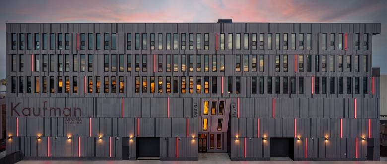 ONstage develops the last two vacant parcels at Kaufman Astoria Studios—New York City’s oldest film studio—amid a dense residential urban context. The project integrates complementary and technically complex programs into a single building, stacking support spaces above the stages. The design streamlines the constant interaction between frontstage and backstage essential for every film production to create the big screen magic.