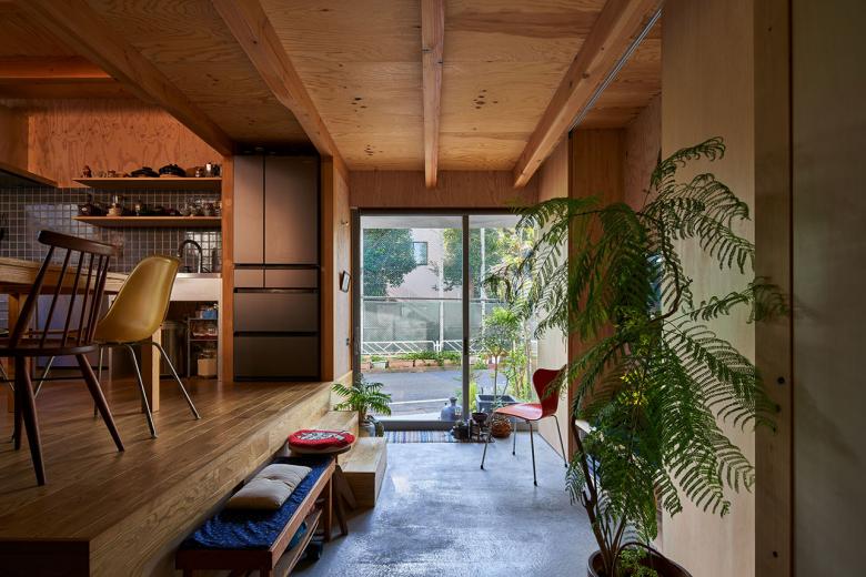 The purpose of this project is to rebuild the wife's parents' house in a quiet place near Chofu Airport and create a two-family house where five people of three generations will live.