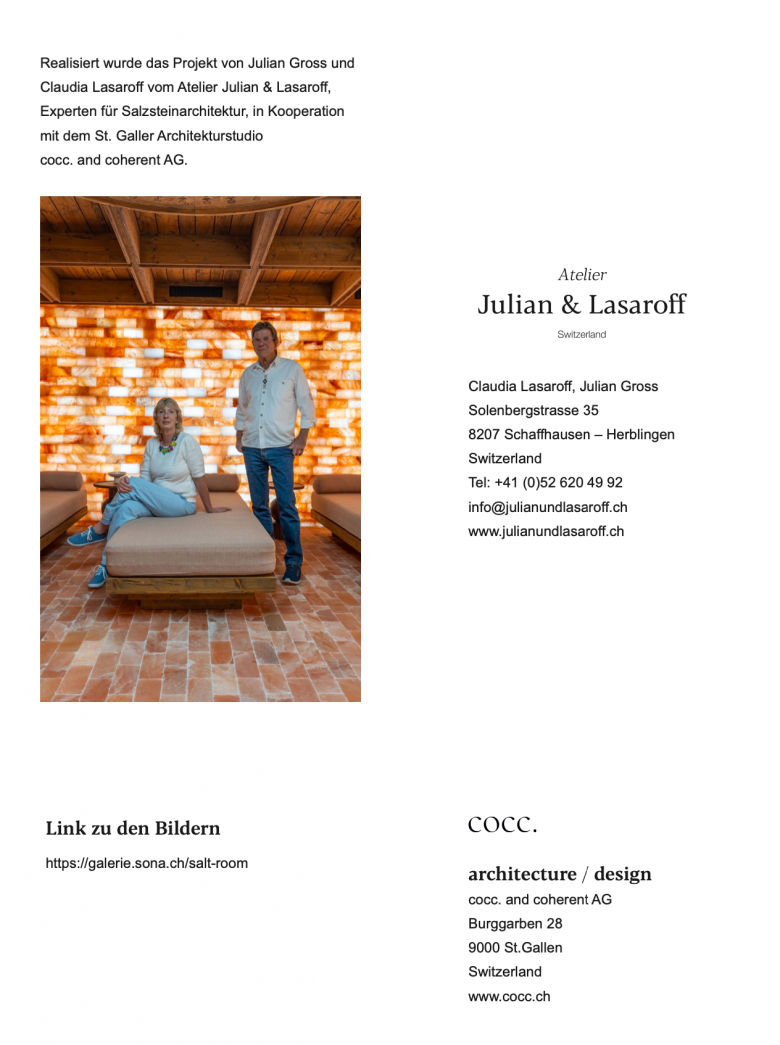 Realisiert wurde das Projekt von Julian Gross und Claudia Lasaroff vom Atelier Julian & Lasaroff, Experten für Salzsteinarchitektur,