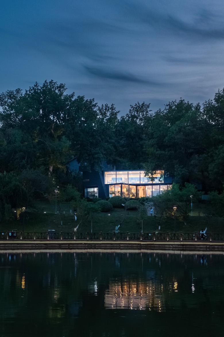 设计团队在踏勘场地时,敏锐地捕捉到这片区域的特殊气质:它位于映山湖西岸,恰好处于公园主游线的视觉盲区,却又是观赏音乐喷泉全景的最佳区位之一。湖面在此处形成一个天然的弧形湾口,晨雾弥漫时如一幅水墨,晴日里则倒映着虞山城墙的轮廓。这种“隐于闹市,却独拥湖光”的矛盾特质,成为设计最初的灵感触发点。我们希望在这里创建一个可以与自己对话的容器,让忙碌的人们有机会与自然联系。
