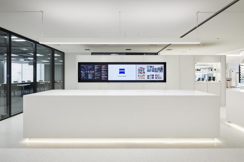 世界的な光学機器メーカーZEISSのラボとショールームを含む新オフィスのデザイン。計画にあたっては、都内に点在していた部署を一拠点に集約し、業務効率の向上と社内連携の強化が求められました。