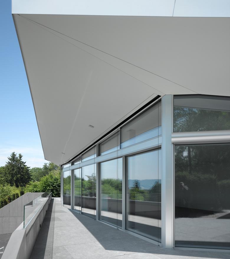 PAVILION HOUSE is located at the coveted Gold Coast of Zurich. The nurtured green roof of the villa blends in its nature surrounding. The advantageous position of the villa complemented by large bay windows facing Lake Zurich and Alps, suffuse the home with light in abundance. PAVILION HOUSE has a living space over two floors, surrounding terrace, an artist studio and gallery to display the owner’s modern art collection. The villa is equipped with a large spa area, sauna, private garden and a garage with a parking capacity of six cars. More at https://www.studioforma.ch/architecture-projects/residential/contemporary-classical-mansion
