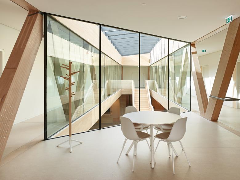 Als Leitidee des Entwurfs dient das expressive Bild eines naturbelassenen Waldbodens bzw. die Struktur geknickter Bäume im naturbelassenen Nationalpark Schwarzwald. Passend zum Thema Urwald, dessen wesentliches Kennzeichen das Totholz ist, werden die einzelnen Gebäudeteile scheinbar willkürlich übereinander gestapelt. Es entsteht eine Figur, die sich in das Waldgefüge eingliedert - die Gebäudeteile platzieren sich zwischen den Bestandsbäumen.