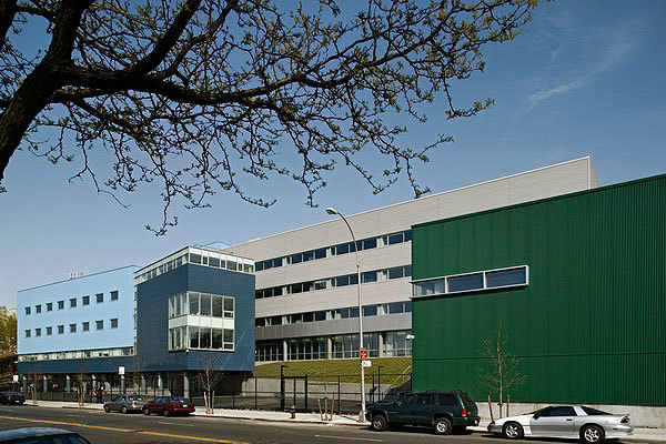 The challenge was to create a low-cost but college-like campus within one block in the South Bronx which would foster the educational ideals of the school for 800 students, their parents and teachers. We turned the steep site, which at first seemed almost unbuildable, into an asset by creating a series of linear forms that step up the slope, each one identified as a separate "academy." This avoided the box-like institutional cavern of most school buildings and made the scale student-friendly. The two middle schools, upper school, and a multi-use "gymnatorium" for both school and community activities have their own distinctive architectural form. Like the mission of the school, the self-contained and serious but welcoming spaces represent a retreat from the problems of the inner city as well as the hopes and opportunities that education brings.