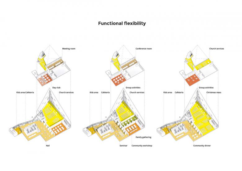 OOPEAA: Iida Hedberg Project Architect for the Church, Tuuli Tuohikumpu Project Architect for the Housing Furniture for the Altar: Mikko Paakkanen Studio Paakkanen
