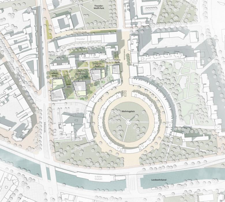 Die zentrale Lages des Ortes im Herzen Berlins verlangt nach einer hohen Nutzungsintensität. Dies, verbunden mit einer intensiven und insbesondere auf Erdgeschoßebene kleinteilig ausgestalteten und sozial ausgewogenen Nutzungsmischung, schafft einen, zu unterschiedlichen Zeiten aktiven und lebendigen städtischen Ort. Hier wird nebeneinander und übereinander gewohnt, gearbeitet, gelernt, gegessen, eingekauft, Freizeit verbracht, gefeiert und gelebt. Die einzelnen Stadträume sind durch Nutzungsschwerpunkte geprägt die als Leitbilder für das Zusammenspiel von Freiraum- und Gebäudenutzungen fungieren.