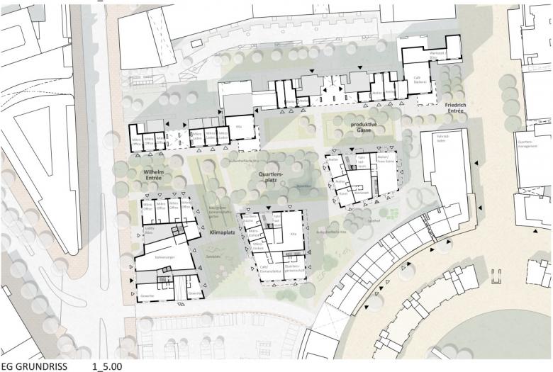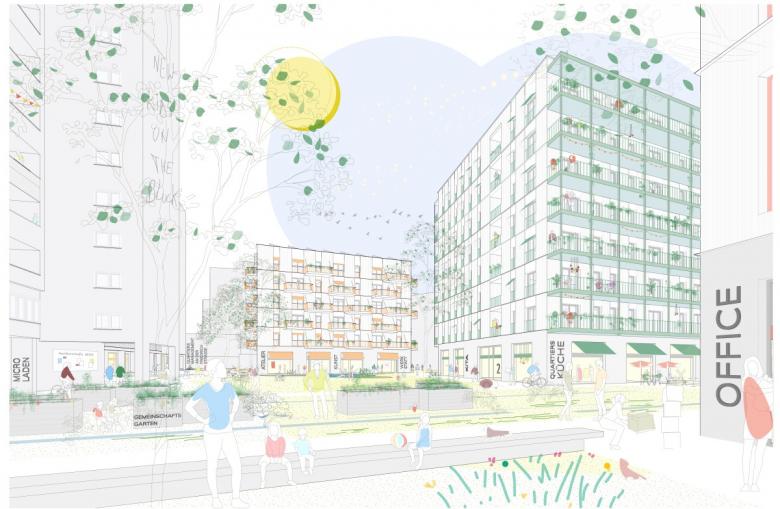 gemischt genutzes urbanes Quartier - Wohnen, Gewerbe, Gemeinshaft, Kita, Büros