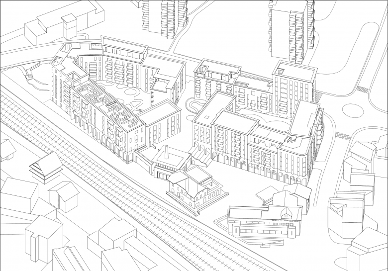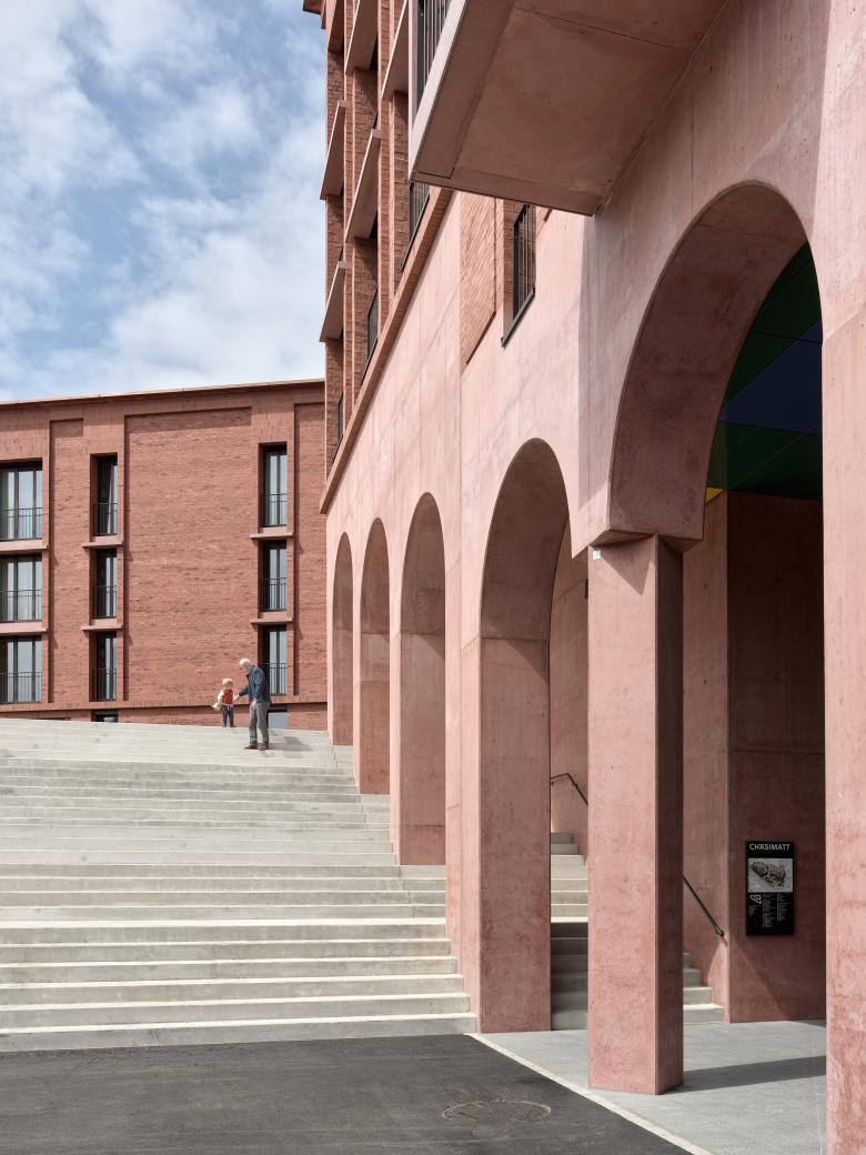 Die Chäsimatt liegt in Rotkreuz, einer der am schnellsten wachsenden Gemeinden der Schweiz und ist eine Antwort auf das 30-prozentige Bevölkerungswachstum in den letzten zehn Jahren. Sie verdichtet das Dorfzentrum und gibt im städtische Züge. Das Projekt umfasst 126 Mietwohnungen – von 1,0-Zimmer-Studios bis hin zu 7,5-Zimmer-Maisonette-Wohnungen – sowie Wohngemeinschaften, seniorengerechte Wohnungen, ein Selbstbedienungshotel, 36 kleine Geschäfte und einen grossen Landi-Laden. Gastrobetriebe säumen den öffentlichen Platz, während Ateliers entlang der Binzmühlestrasse zu einem lebendigen und sicheren Strassenbild beitragen.