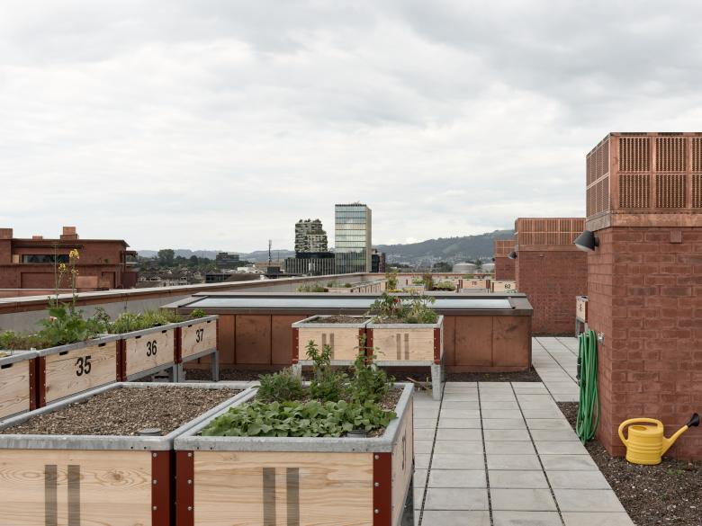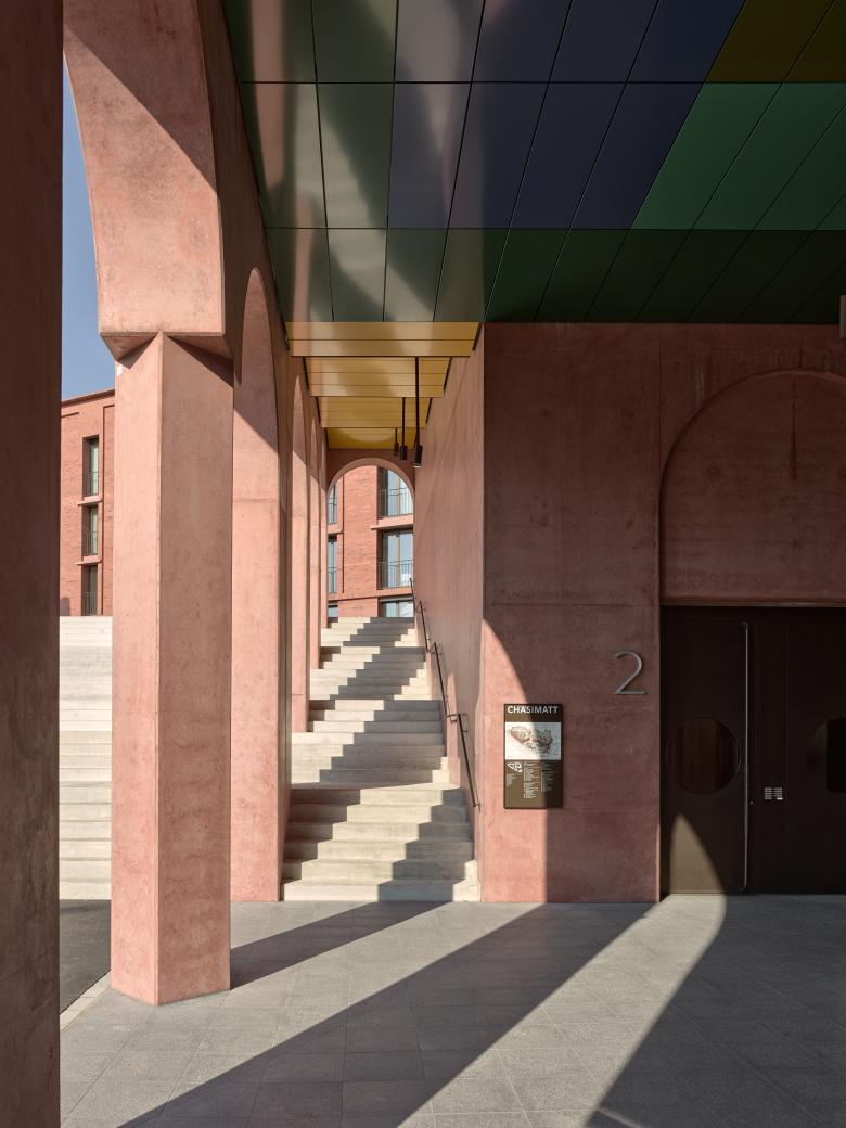 Von Anfang an war die Förderung von Begegnungsmöglichkeiten und spontanen Kontakten ein zentrales Konzept des Projekts, insbesondere als Reaktion auf die rasante Urbanisierung der Gemeinde und die damit verbundene Integration neuer Bewohner:innen in die bestehende Gemeinschaft. Eine Vielzahl von gemeinsamen Einrichtungen in der Chäsimatt unterstützen dieses Gemeinschaftsgefühl, darunter ein zentraler Postraum, ein Gemeinschaftssaal, ein Hundewaschraum, zwei geräumige Fahrradräume – jeweils mit Waschbereich und Werkstatt –, Coworking-Spaces, eine Bibliothek, eine Kita, ein Dachgarten und ein Pavillon mit Feuerstelle für Sommergrillpartys oder Winterglühweintreffen, um nur einige zu nennen. Die Chäsimatt ist mehr als nur ein Wohnbauprojekt. Sie bietet einen durchdachten Ansatz für urbanes Wohnen, das architektonische, soziale und ökologische Werte miteinander verbindet.