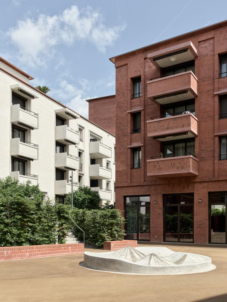Die Gebäude verfügen über ein robustes Zweischalenmauerwerk auf einem Betonsockel. Langlebige Materialien wie Klinker und pigmentierter Beton erfordern nur minimale Wartung und sind so konzipiert, dass sie elegant altern. Die Wohnungsgrundrisse gewährleistet eine natürliche Querlüftung durch Innenhöfe, sodass keine mechanischen Systeme erforderlich sind.