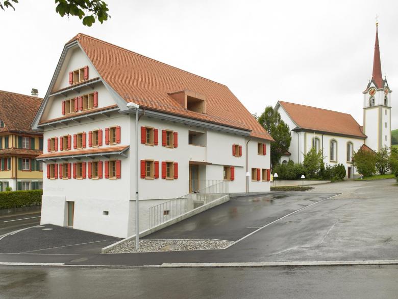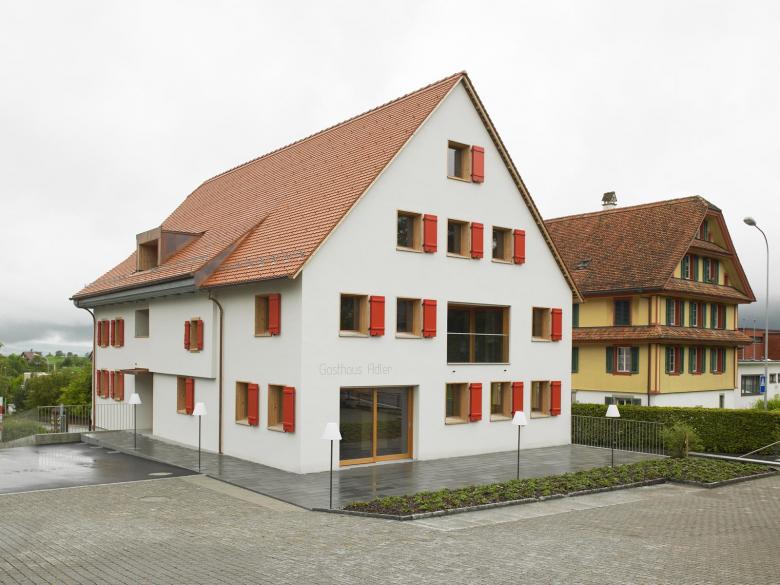 Das traditionelle Gasthaus erhielt eine Restaurant- und Kücheninfrastruktur nach heutigen Anforderungen, darüber wurden zwei altersgerechte Wohnungen und im Dachgeschoss die Wirtswohnung erstellt. Sämtliche bisher verborgenen Fachwerkkonstruktionen mit Bemalungen wurden aufwändig saniert und in den neuen Wohnungen sichtbar gemacht.