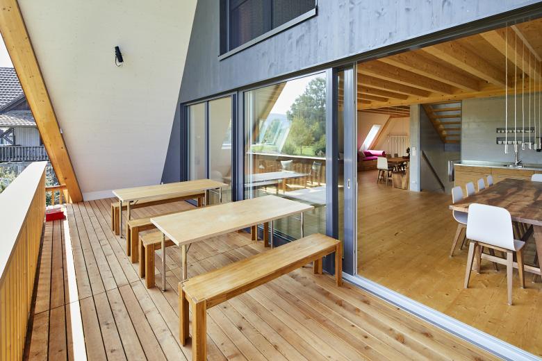 Der Ersatzneubau eines Gesellschaftshauses greift die Form des Vorgängerbaus auf, übersetzt den in den 1970ern populären A-Frame-Bautypus jedoch in die Neuzeit. Das neue Gesellschaftshaus liegt idyllisch an der Eschenzer Bucht am Bodensee, umgeben von einem grossen Garten mit Bootssteg. Der Neubau am Untersee ersetzt ein sanierungsbedürftiges Sommerhaus einer Familie. Wie dieses sollte auch der Ersatzneubau ein Ort der Begegnung, aber auch ein Ort des Rückzugs, der Stille und Abgeschiedenheit sein. Doch künftig öffnet sich