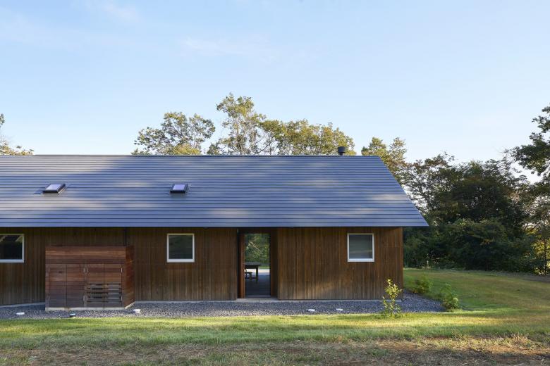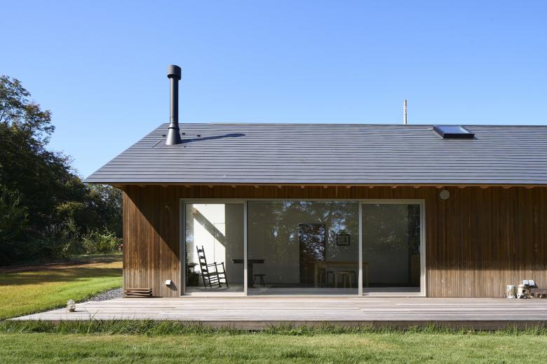 最小限の住宅でありながら、大きなデッキと自然へと開かれた構成により、空間は外へと豊かに広がっている。