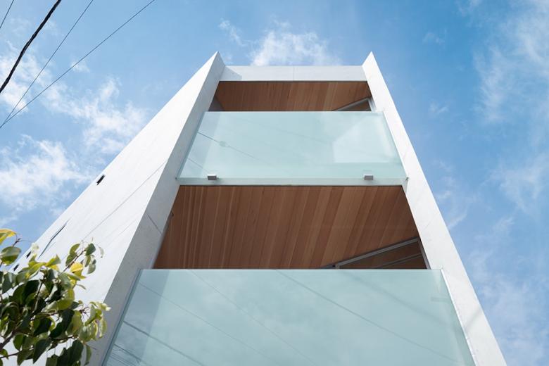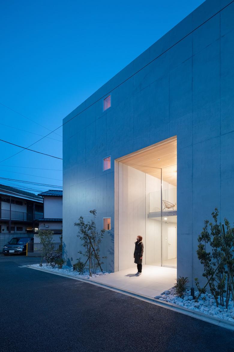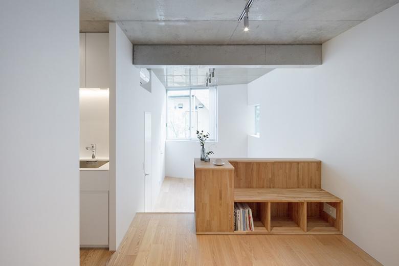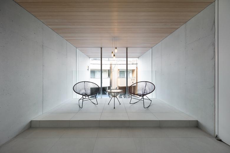 1階共用部は、エントランスを兼ねたパブリックなスペースに、2階は小上がりに家具を設えたプライベート感のある室内的空間に、3階は5m超の天井高として、ルーフバルコニーへ繋がる開放的な吹き抜けとした。