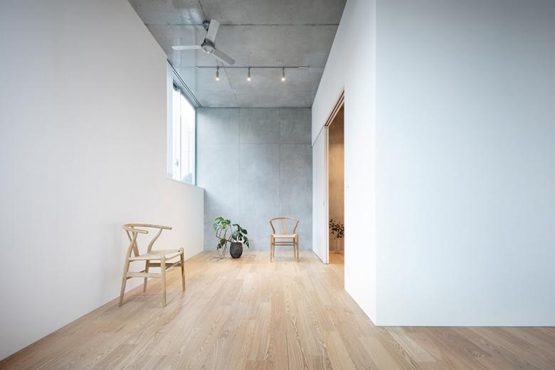 井の字型で作られた9マスの中心は共用部に、外部との繋がりが大きく、風や光を取り込みやすい4隅のマスは居室とした。各々の居室は、外部環境や方位等と対応するように、開口サイズや位置、仕上げを調整した。