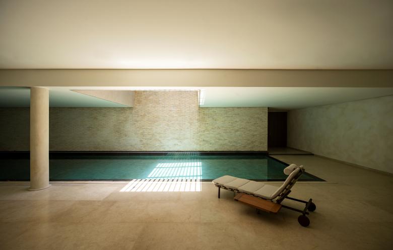 The envelope of the house responded with similar deliberation. A layered assembly of Peterson bricks as the key facade material, air cavities, and insulated blockwork coalesced into a silent system of resistance against heat gain. Planted roofs and perforated jaalis in weathering steel filtered light and dust, while water bodies and skylights choreographed an internal atmosphere that remained cool, luminous, and grounded.