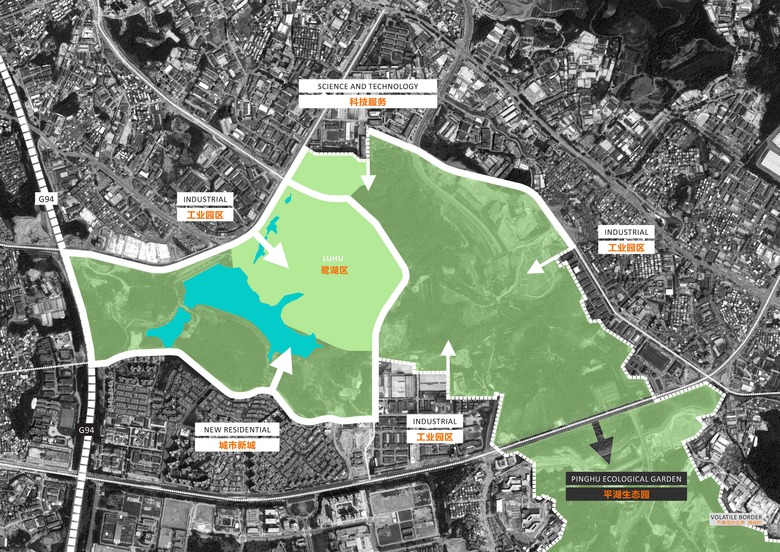 Located in Longhua’s Luhu District, the seventy-hectare site is wedged between an industrial area and the slopes of a nature park fragmented by years of hasty urban development and unrestrained spillways from the nearby Hengkeng reservoir. Instead of approaching infrastructural and ecological challenges as separate from architectural design, our project advances a building strategy that employs architecture to reorganize the topography and the spillways into public amenities inhabiting a new type of waterfront.