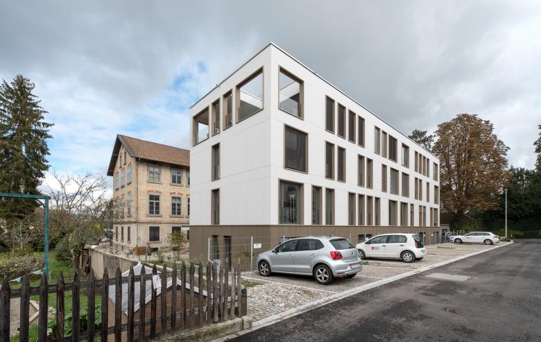 Der Wohnbau von 1961 sowie das Lagergebäude wurden abgerissen, um Platz zu schaffen für einen schmalen, 4-stöckigen Neubau, der direkt neben der alten Fabrik angeordnet und mit dieser über ein Holzvordach verbunden ist. Das neue Gebäude bietet auf den ersten drei Geschossen 40 moderne Arbeitsplätze und im Untergeschoss Technik-, Lager- und Kellerräume. Im obersten Stock wurden zwei Wohnungen (4 ½ und 2 ½ Zimmer) erstellt.