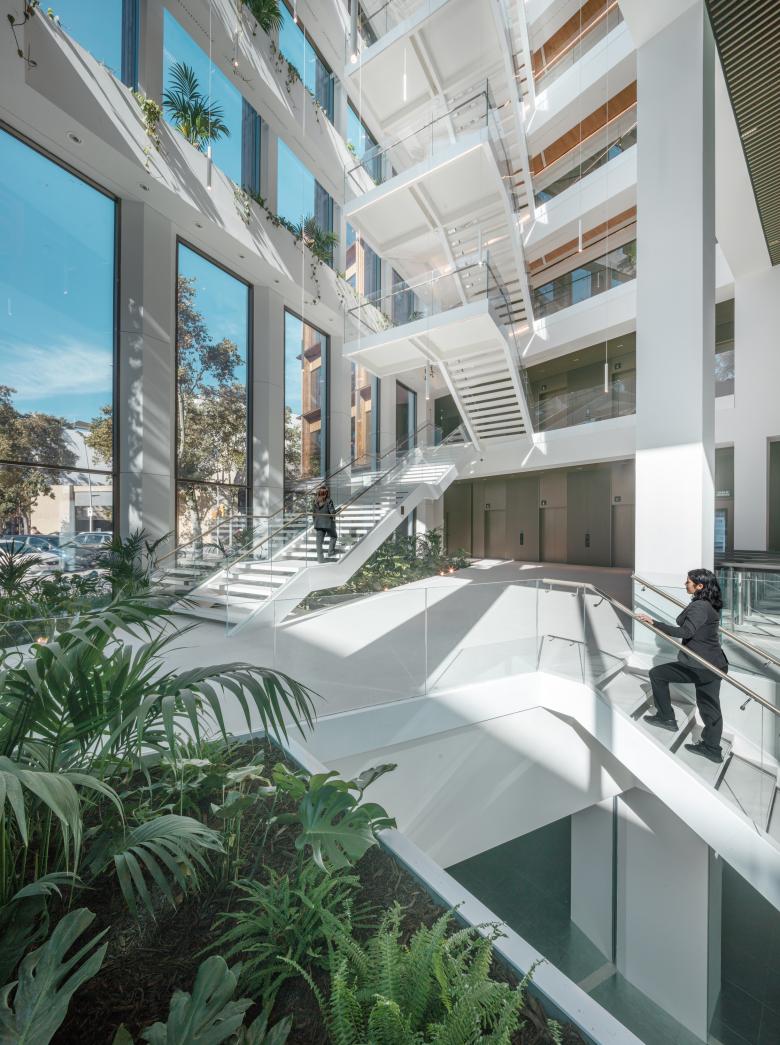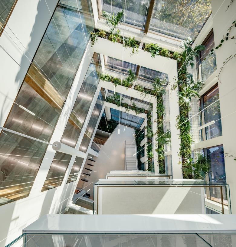 From a sustainability perspective, the project achieves the highest environmental and energy standards. It holds LEED and WELL Platinum certifications, as well as WiredScore and SmartScore Gold ratings, with carbon neutrality during both the design and construction phases certified to PAS2060. The design also incorporates green roofs and an urban garden, further contributing to environmental quality and supporting user wellbeing.