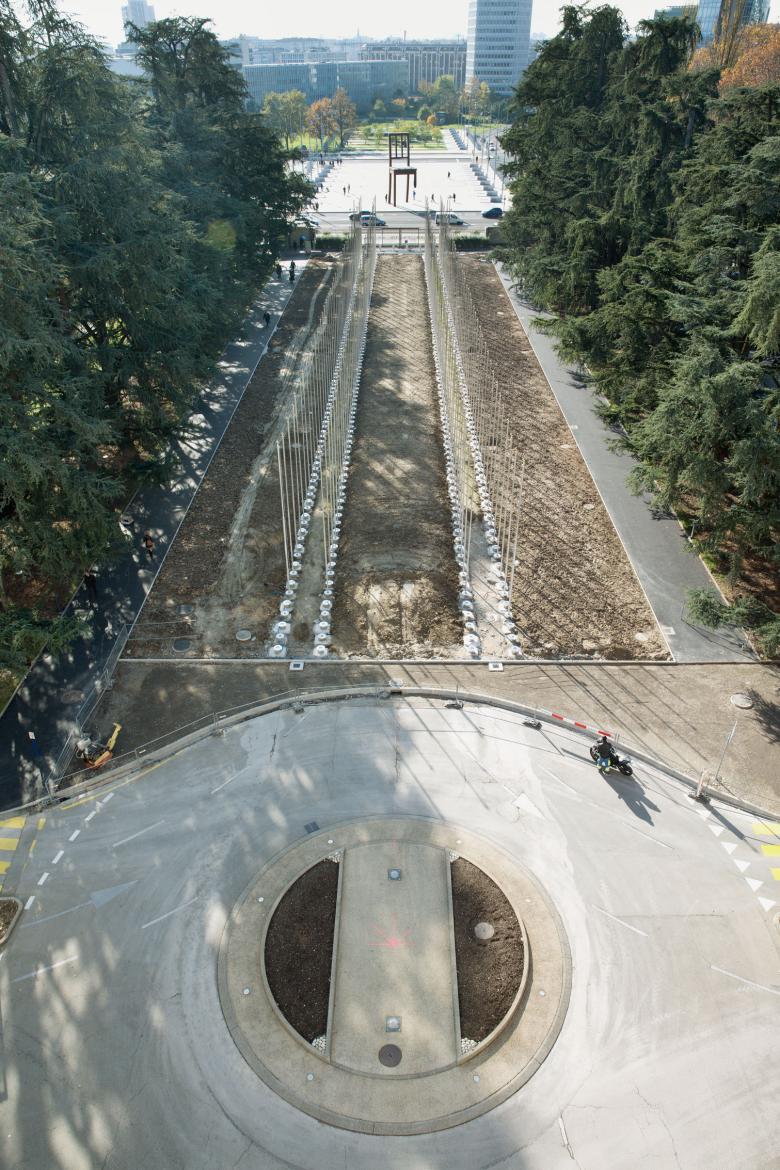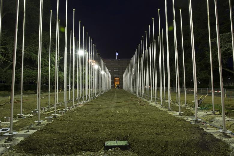 Dans le cadre de l'assainissement énergétique de l'ONU et grâce à un don de la Confédération Helvétique, réalisation du nouvel aménagement extérieur de l’Allée des Drapeaux. La parcelle s’étend sur plus de 3’500 m2. Notre bureau s'est occupé de toutes les phases du projet, y compris le suivi des travaux (arrosage automatique y compris).