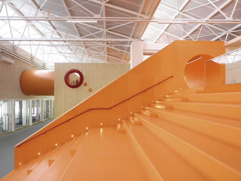The Opificio is seen in terms of a citadel metaphor in which all the activities take on the form of ideal containers, icons of symbolic places in our urban environment, like the City Hall, the School, the Worksite that represents the ongoing work required by a City for its life. Then there is public space, ready to host multiple activities and functions, to sustain social life by means of shared services. The result is an architecture with an intimate dimension, connected with the study and work that happen inside the ideal containers, and a relational system positioned at the connections of the activities.