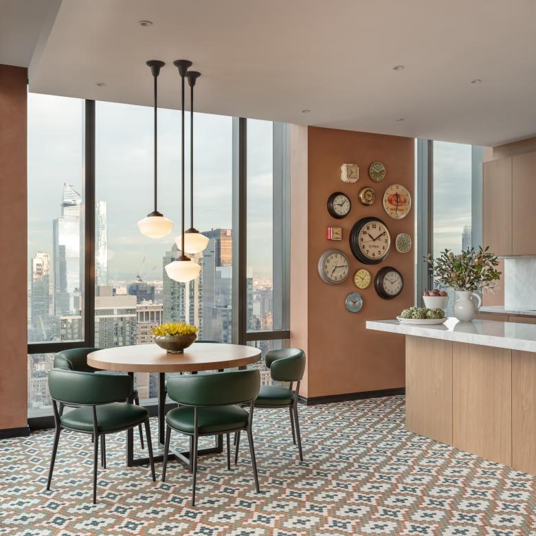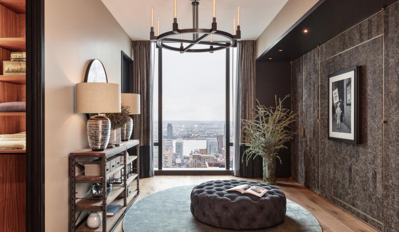 Einen privaten Rückzugsort für Ferienaufenthalte im geschäftigen Manhattan – genau danach suchte das Bauherrenpaar für sich und seine erwachsenen Kinder. Für sie alle entstand im 52. Stock eines neu gebauten Hochhauses an der Fifth Avenue ein Zuhause auf Zeit, in dem das Zusammensein der Familie an allererster Stelle steht. Dafür wurde der Grundriss an die Anforderungen der Bauherrschaft angepasst. Alle Familienmitglieder geniessen bei ihren Aufenthalten in der Stadt die feinfühlige Mischung aus amerikanischer Grosszügigkeit und europäischer Eleganz. Jeder Raum erweist einem anderen Wahrzeichen New Yorks die Ehre – abgestimmt darauf, welche bauliche Ikone durch die raumhohen Fenster des jeweiligen Zimmers zu sehen ist. Unbestrittenes Highlight ist der Living Room mit seiner spektakulären Höhe, in dem sich die unverwechselbare Atmosphäre der Stadt spüren lässt.