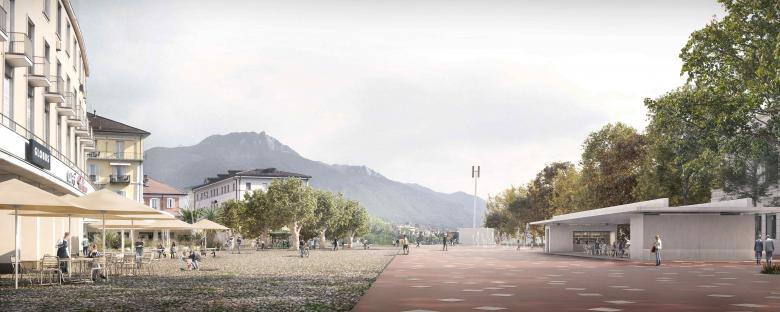 Con la costruzione del palazzo governativo – poi della Sopracenerina - e dell’edificio della posta si è trasformata in piazza Grande, uno spazio interstiziale bifronte e definito da edifici di due epoche diverse. Era dunque luogo di passaggio, di scambio e di incontro. Fino ad oggi, la piazza e il viale di Largo Zorzi rimangono luoghi di transito.