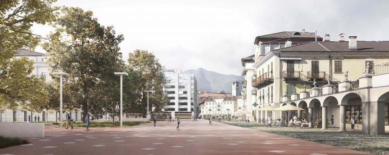 È una superficie che ridà centralità al rapporto con il Verbano collegando nuovamente la piazza al lago e la città vecchia alla città nuova.