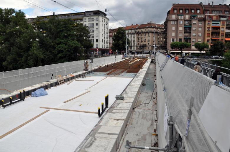 Durant des dizaines d’années, notre bureau a suivi l’état de dégradation de cet ouvrage et a proposé plusieurs variantes de projets, en étroite discussion avec les Maîtres d’ouvrage, l'architecte, les associations du patrimoine et les TPG.