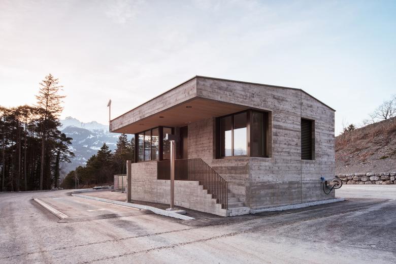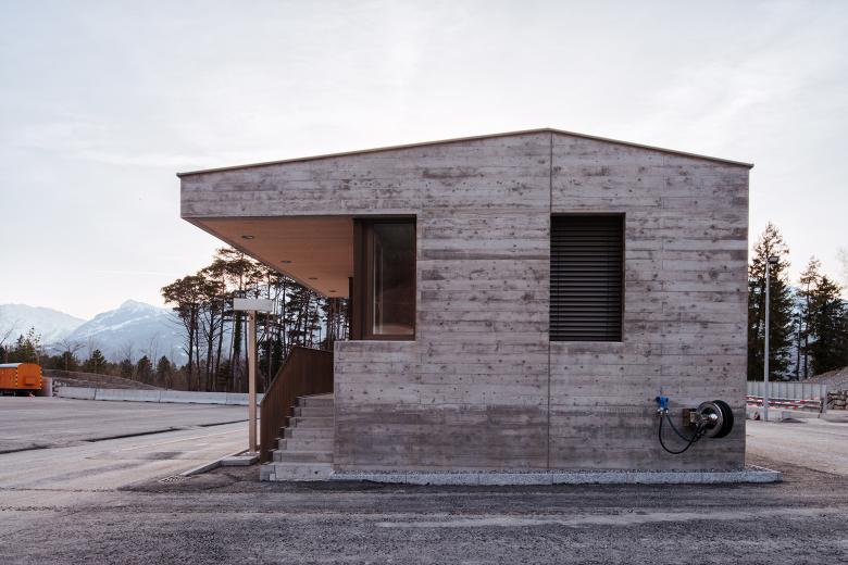 Selbstsicher und integriert steht das Gebäude in der neuen Anlage. Die Schlichtheit der puren Materialien schafft eine Balance zum technischen Nutzen und zieht sich von der Projektidee bis zur Ausführung durch. Sowohl Innen als auch Aussen stehen die Materialien direkt und unbehandelt für sich und sind Konstruktion wie auch Oberfläche zugleich.