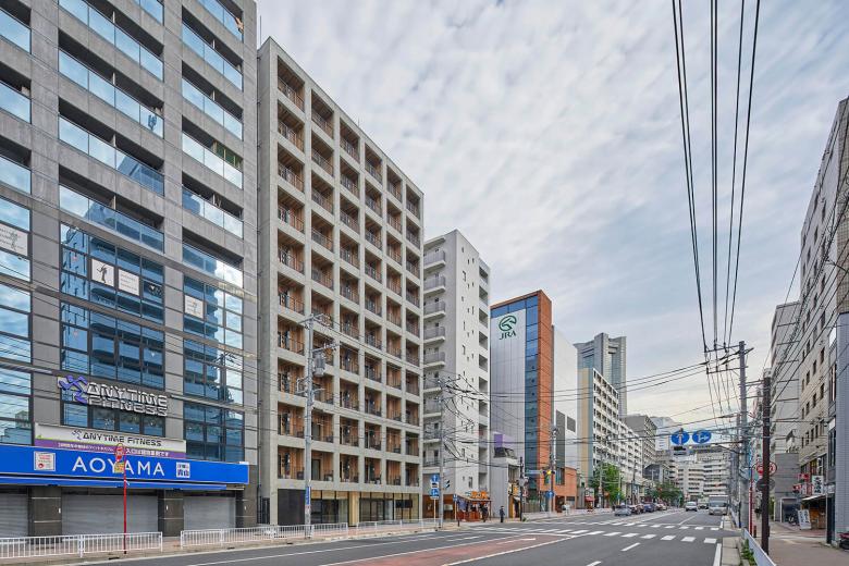 京浜急行日ノ出町駅周辺は元々歴史ある商業地だったが、時代の移り変わりで賑わいを失い、近隣の建物も老朽化してきた。そのため横浜市では野毛地区の街づくりとして、平戸桜木道路に面する建物には集合住宅で人口を呼び戻しながら、低層部には商業、サービス施設を入れて、街を活性化させようとしている。そして駅前再開発で2015年に日ノ出サクアスという商業と集合住宅の複合施設が建てられた。駅から徒歩3分の平戸桜木道路に面したこのプロジェクトの敷地にも、以前は低層の商業施設が建っていたが、11階建ての22-30m2程度の単身者用の住戸が109戸ある分譲集合住宅として計画された。